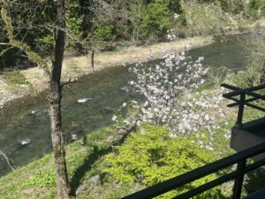 コブシの木と守門川。部屋も新館で眺め良し(祝)