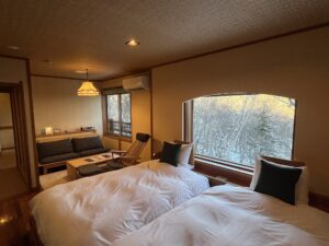 直接宿に予約をするのと同料金だが、サイト経由だと上級会員特典とポイントで8千円程安くなり、2食付きで7万2千円ほど。