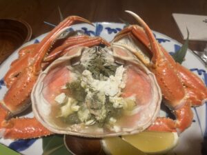 チェックインでお部屋に通されると、その場で晩に出されるズワイガニとご面会。
